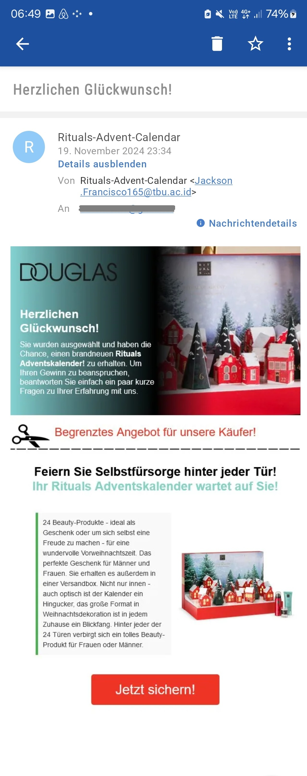 Bitte achtet immer erst auf die Absender-Angaben. Ob sie euch bekannt ist, oder weitere, unnötige Zeichensätze beinhalten.