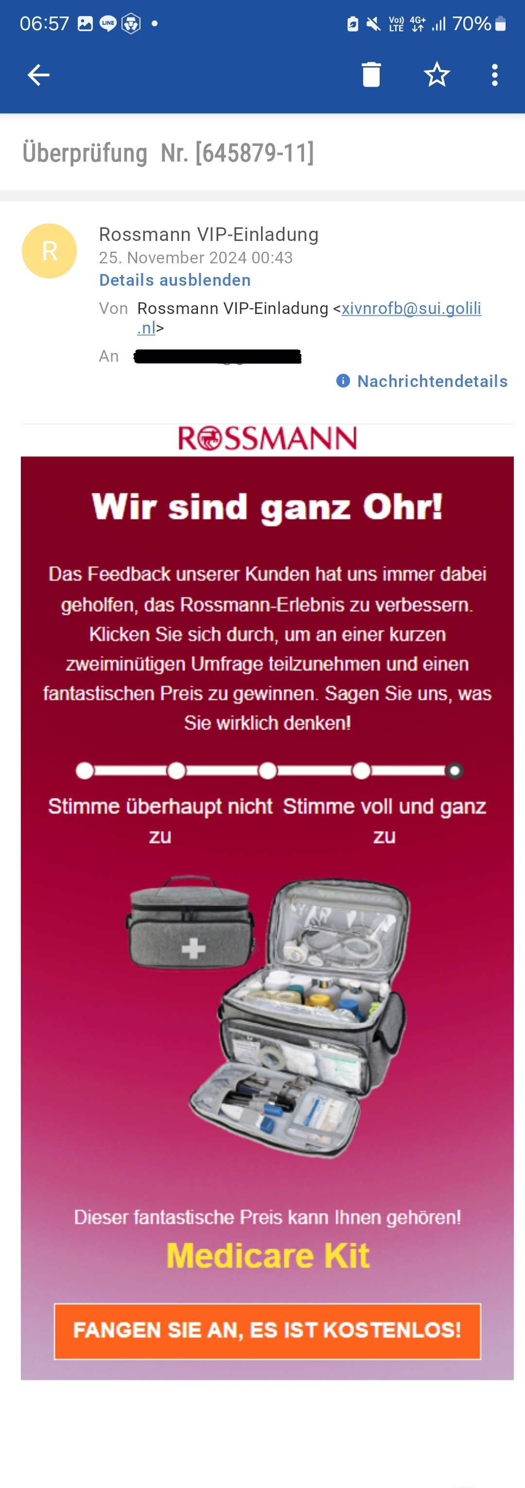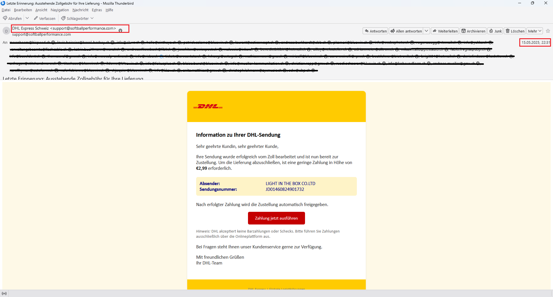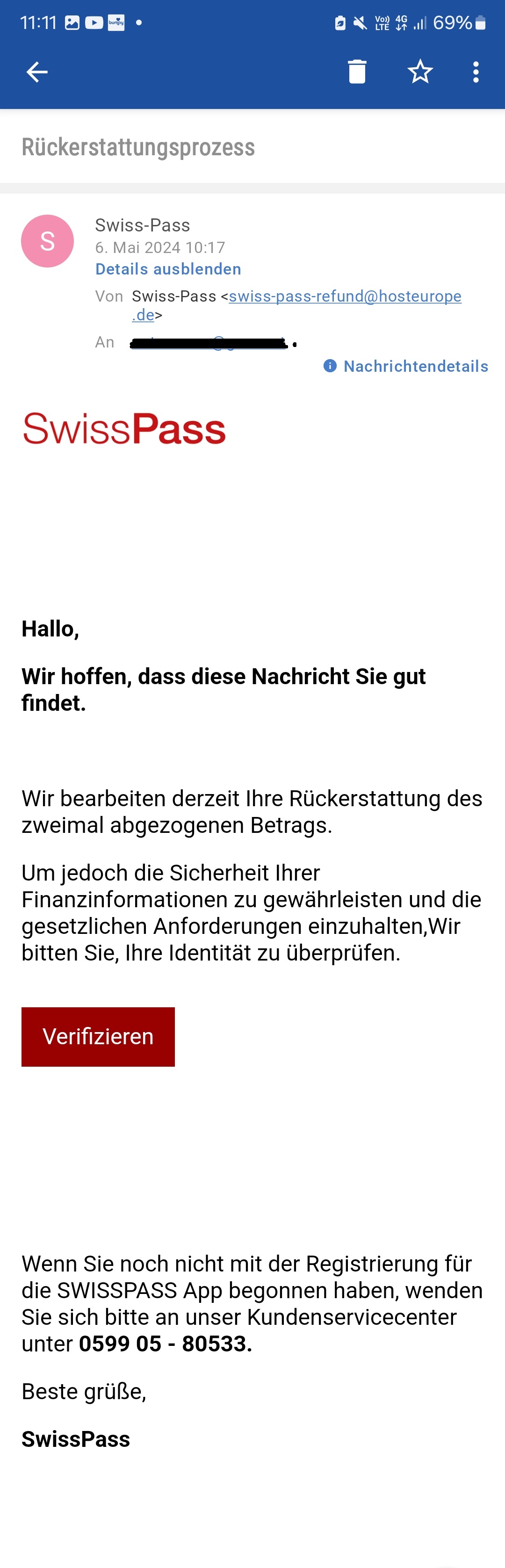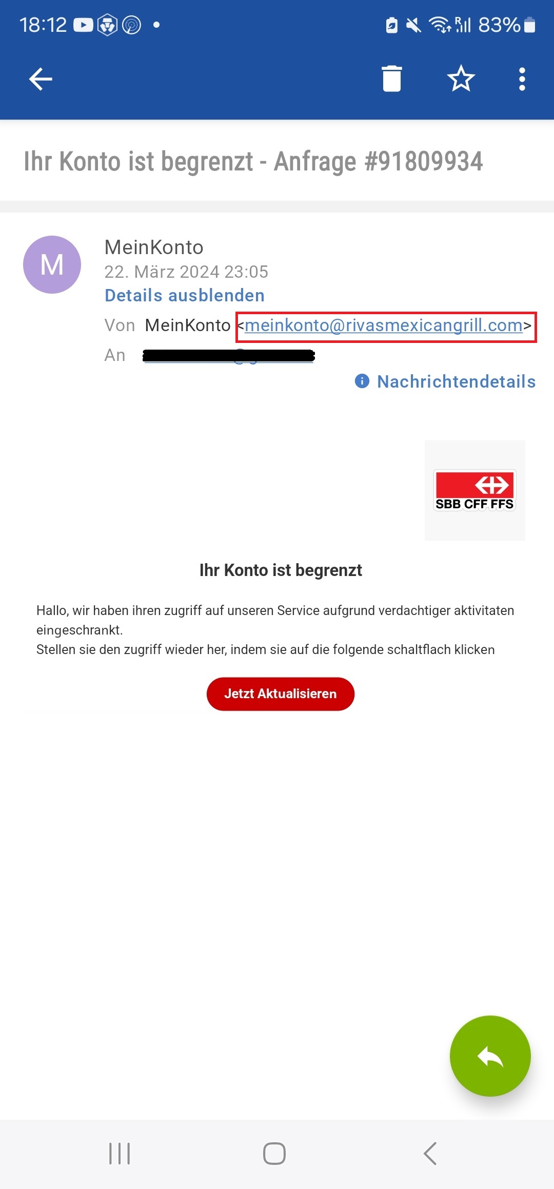 Nach weiterer Überprüfung des eingereichten Screenshots, werde ich sie dann gegebenenfalls im «Fake–Mail Bereich» einfügen.