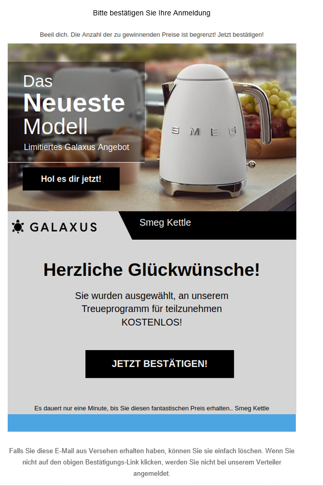 Weitere Merkmale sind schlechte Übersetzungen ins Deutsche. So wie eine «gesamte Verlinkung» des eingefügten Screenshots!