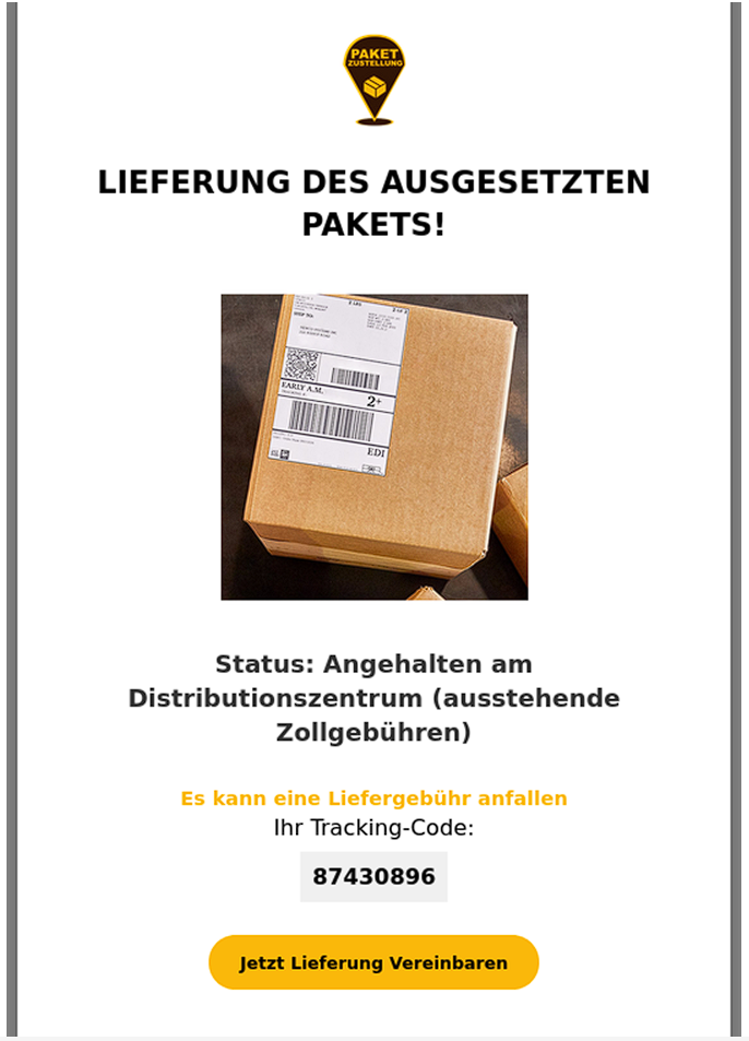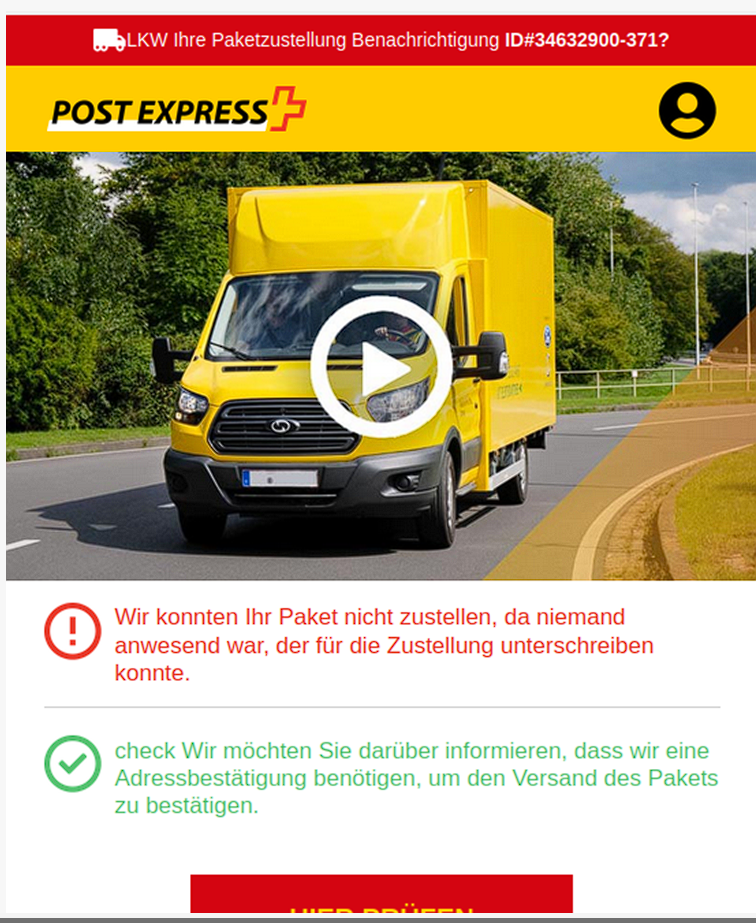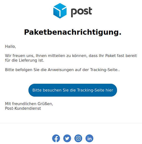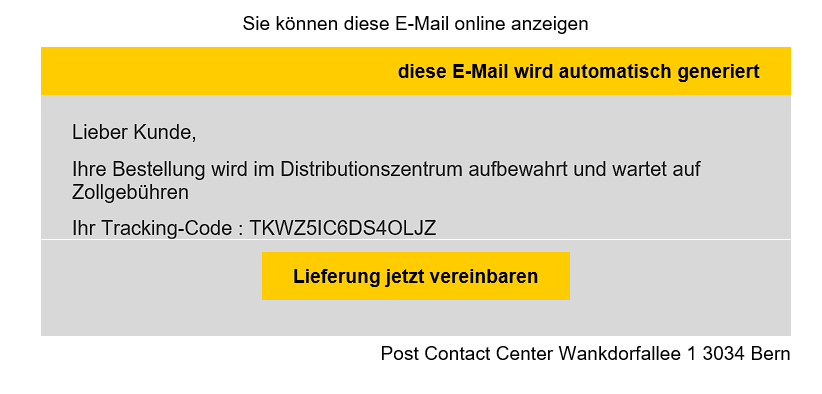 Oder man erwartet z.B. ein Paket und achtet nicht gerade auf den Absender. Dann kann es vorkommen, dass wir auf einen «Fake–Link» klicken